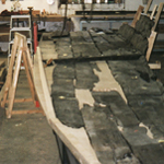 Das sogenannte Rheinschiff Niedermörmter stammt aus karolingischer Zeit und ist ein Flusskahn, der in dieser Zeit auf dem Rhein und anderen Flüssen gebräuchlich war und hauptsächlich für den Transport schwerer Güter wie zum Beispiel Baumaterial verwendet wurde. Flusskähne dieses Typs wurden in der Regel entlang der Flussufer getreidelt. An ihrem Zielort wurden sie auseinandergenommen, ihr Holz wurde anschließend weiterverwendet, weil die Rückfahrt gegen die Strömung zu schwierig war. |