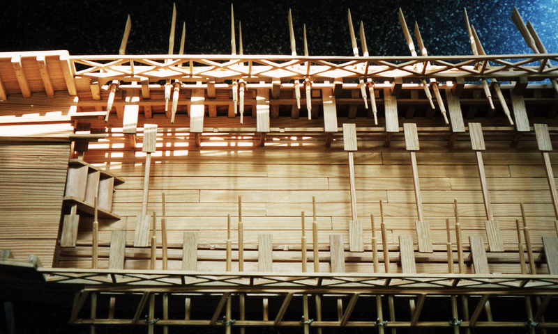 Grabungsfund aus dem Jahr 1878 Das Neumagener Weinschiff wurde im Jahr 1878 unter einer Kastellanlage in Neumagen-Dhron an der Mosel gefunden. Der Grabungsfund ist kein echtes Schiff, sondern eine Abbildung. Sie war Teil des steinernen Grabmals eines römischen Weinhändlers aus der Zeit um 220 n. Chr. Gezeigt werden sechs Ruderer, zwei Steuermänner und 22 Ruder. Im Hintergrund erkennt man Fässer, die, neben der Tatsache, dass dieses Schiff gerudert wird, den Schluss zulassen, dass es sich um ein Fahrzeug aus der Region handelt, gebaut für den Verkehr auf der Mosel. Die Rekonstruktion Die Abbildung des Weinschiffes diente dem Leiter des Forschungsbreichs für Antike Schiffahrt am Römisch-Germinischen Zentralmuseum in Mainz, Dr. Ronald Bockius, als Grundlage für die Rekonstruktion. Sie entstand durch Vergleiche mit ähnlichen Fahrzeugen, aber auch durch Analyse des Gezeigten: So kann man zum Beispiel aus der Tatsache, dass es sich um ein Schiff mit 22 Rudern handelt, Rückschlüsse auf dessen Länge ziehen. Nach Abschluss der Rekonstruktion wurden deren Ergebnisse zunächst in einen Linienriss und ein maßstabsgetreues Modell umgesetzt (s. Abb.), das im Rheinischen Landesmuseum Trier gezeigt wird. Modell und Linienriss wiederum dienten uns als Vorlage für die Bauzeichnung und den Schnürbodenriss, aus dem sich alle für den Bau notwendigen Maße ableiten lassen. Das "echte" Neumagener Weinschiff, das heute als Charterschiff im Neumagener Hafen ankert, wurde als Nachbau (18 Meter Länge, 22 Ruder, motorisiert) im Rahmen eines Projekts von Auszubildenden der Handwerkskammer Trier hergestellt.