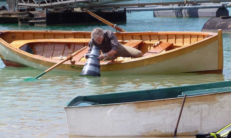 Richtig, Sie sehen hier den Bestseller-Autor Frank Schätzing in einem unserer Boote, einem Ruderboot vom Typ
